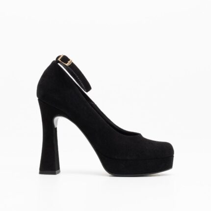 black suede pumps with platform and high chunky heel