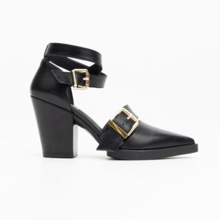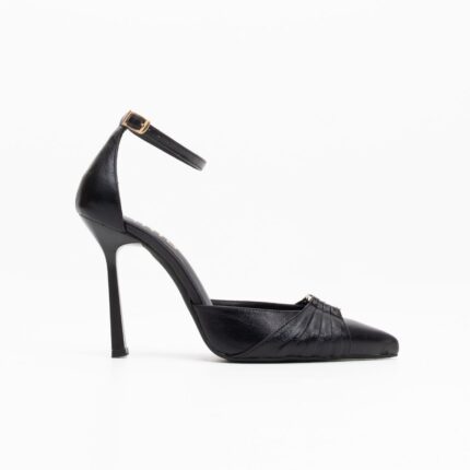 black leather high-heeled pumps