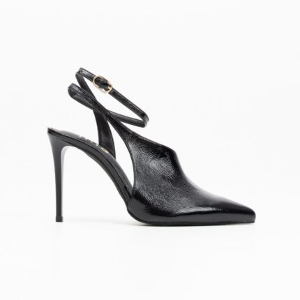 black patent leather slingback high-heel pumps