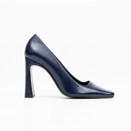 blue patent leather high-heeled pumps