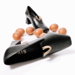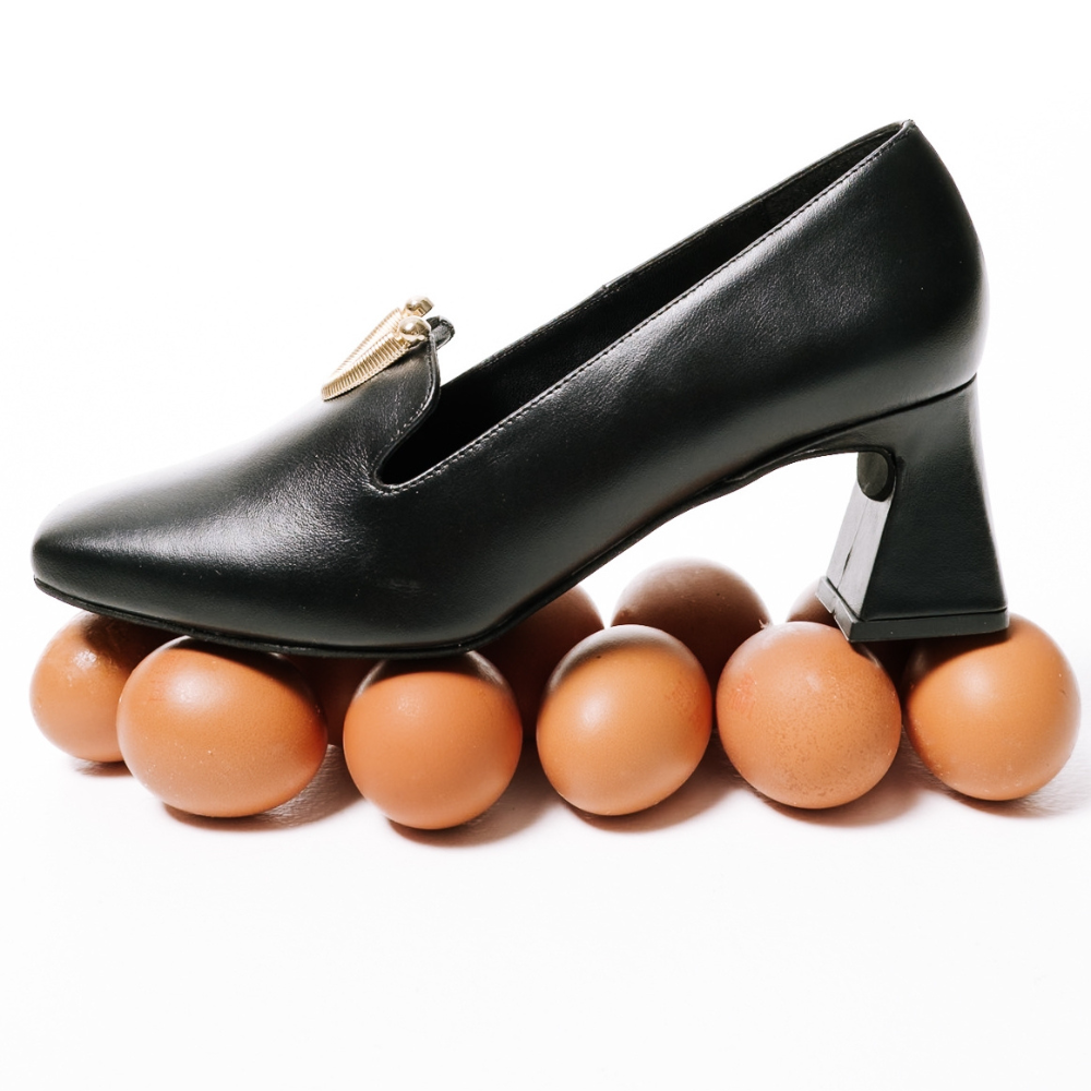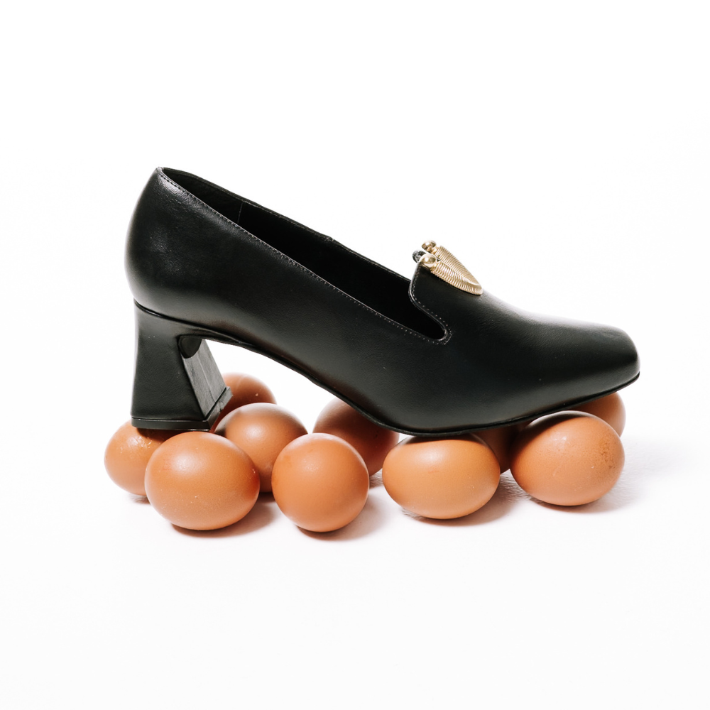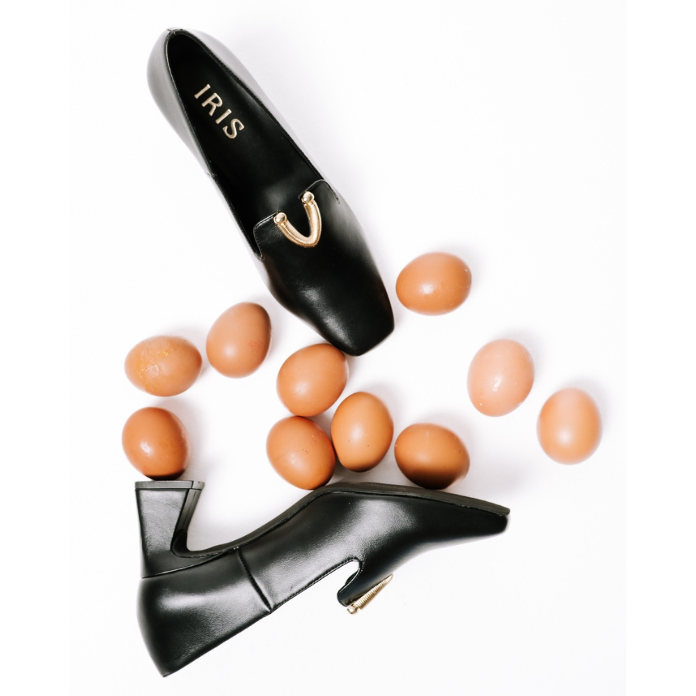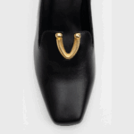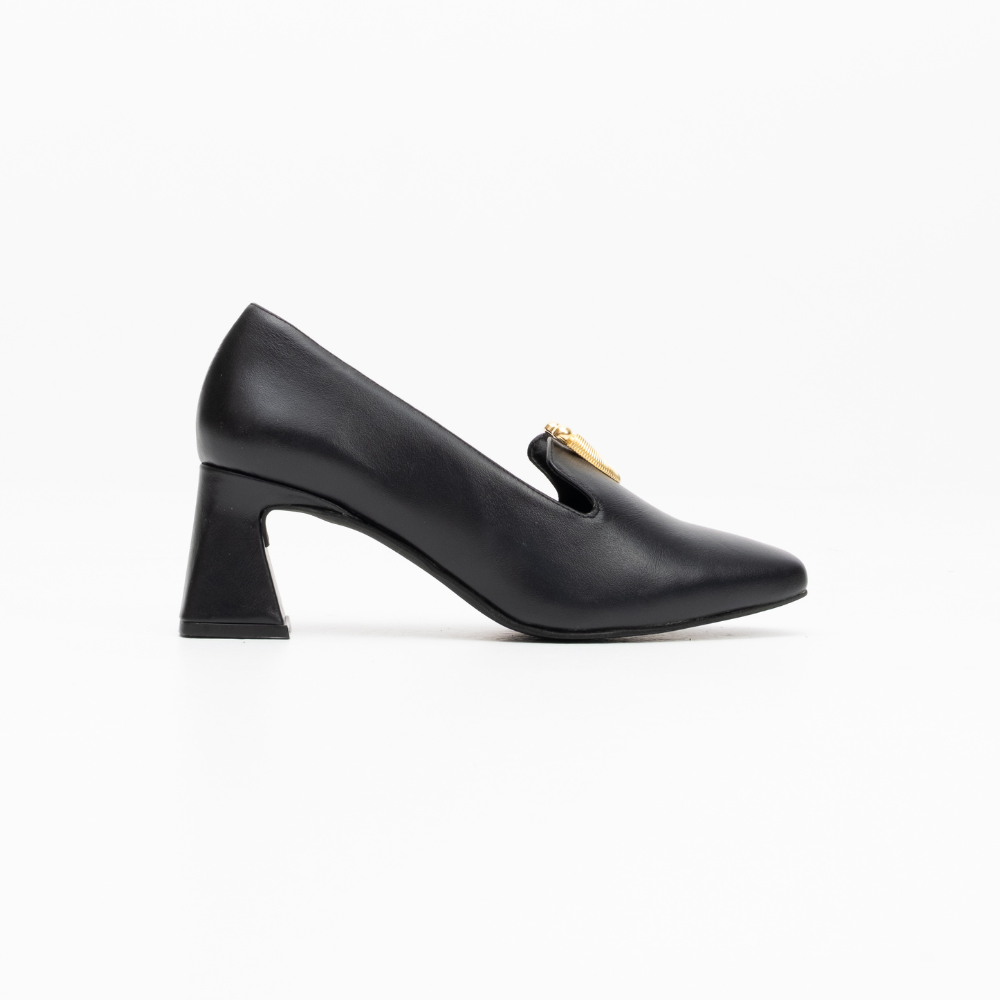 Square-toe leather pumps with a medium heel and embellishment. Easy-to-wear pump with a comfortable regular fit, soft leather insole, and a distinctive heel.