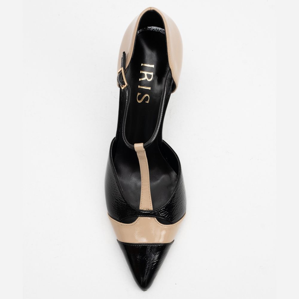 black/nude patent leather T-STRAP pumps