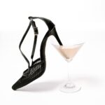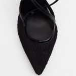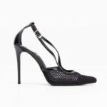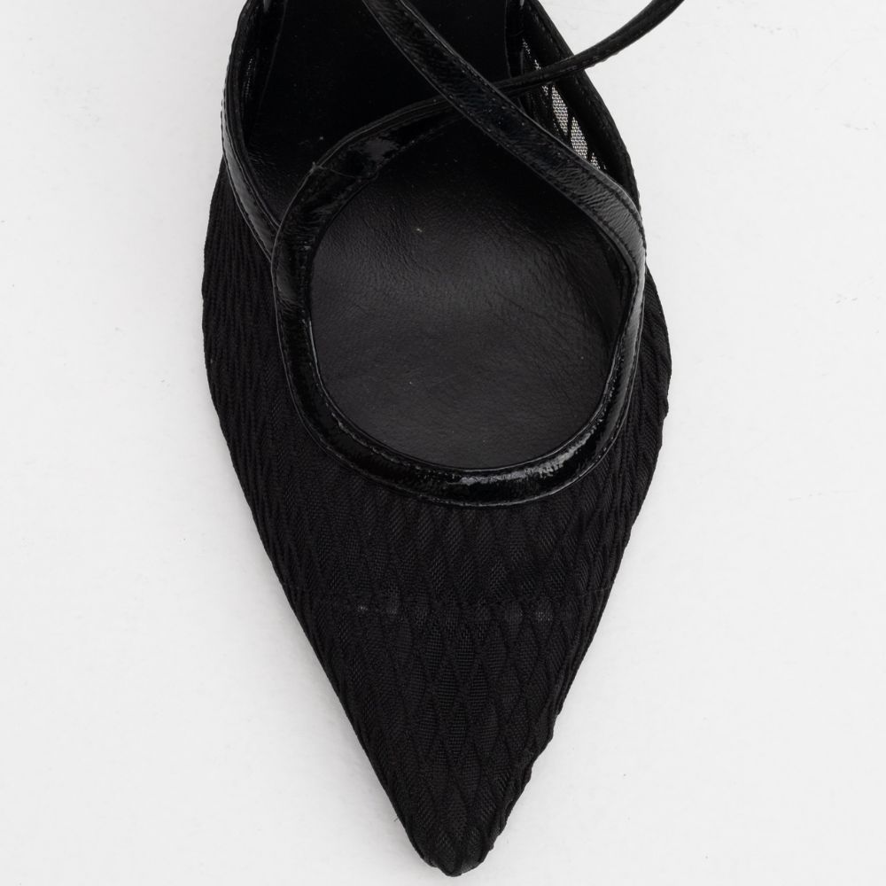 Pointed leather pumps with a high heel and decorative tie. Striking pumps for very special occasions.