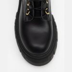 Black Leather Lace-Up Chunky Ankle Boots