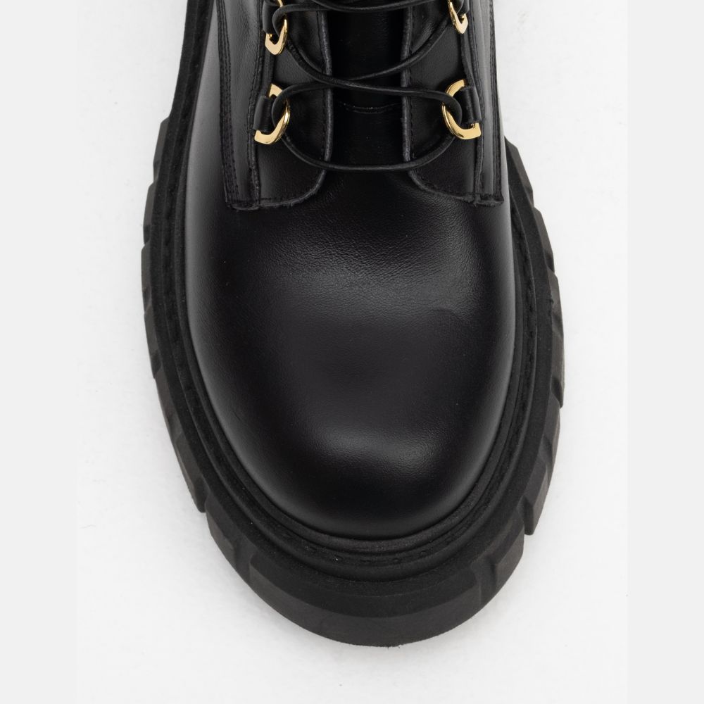 Leather lace-up ankle boots with a chunky sole. Featuring a comfortable round toe and fit, and a soft insole. A versatile design, perfect for the office or casual outings.