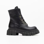 EDRA103 black chunky leather loafer boots
