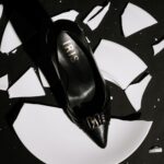 black leather pumps with embellishment