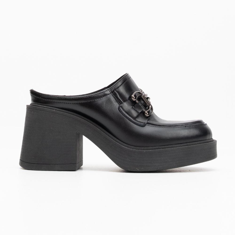 Leather mules with a chunky high heel. Very comfortable with a soft insole, a chunky stable heel, and a shock-absorbing, non-slip sole.