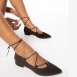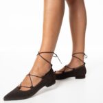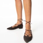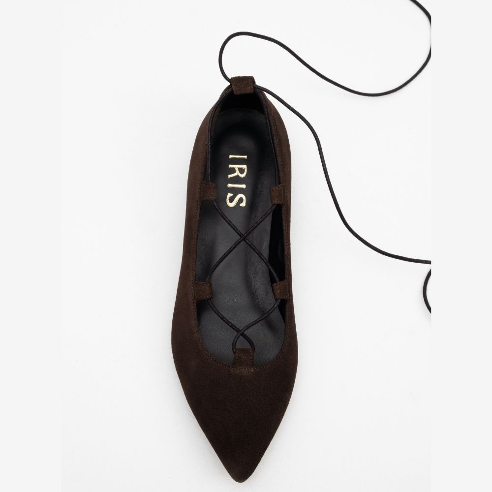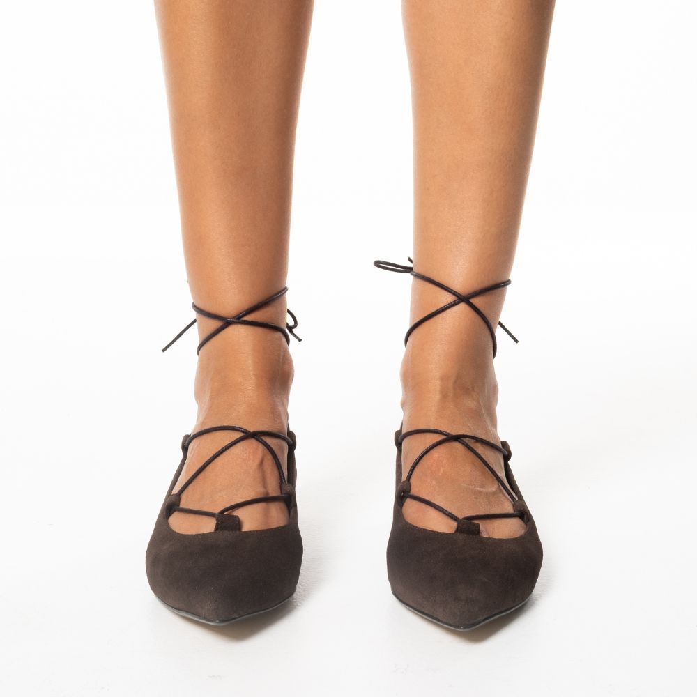 brown suede flat pumps with ties