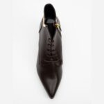Pointed leather ankle boots with laces. Decorative detail on the ankle and a medium heel.
