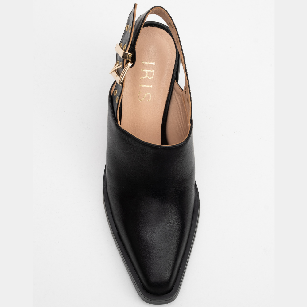 Mules δερμάτινα WESTERN style με μπαρέτα στη φτέρνα. Μαλακός πάτος, χοντρό σταθερό τακούνι. Ένα σχέδιο για όλες τις εποχές και δυναμικές casual εμφανίσεις.