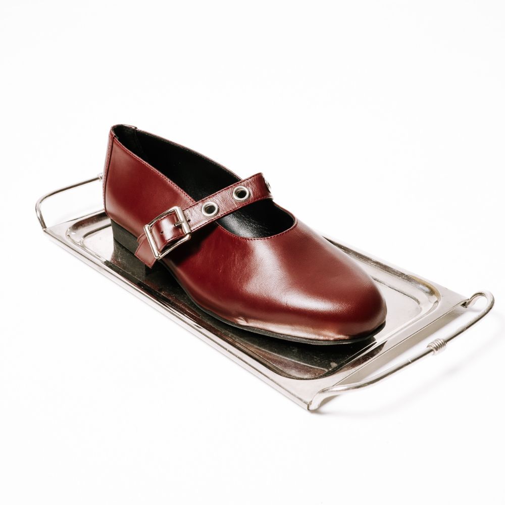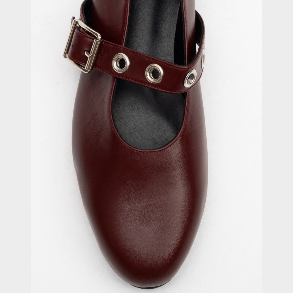 μπορντώ δερμάτινες μπαλαρίνες με μπαρέτα