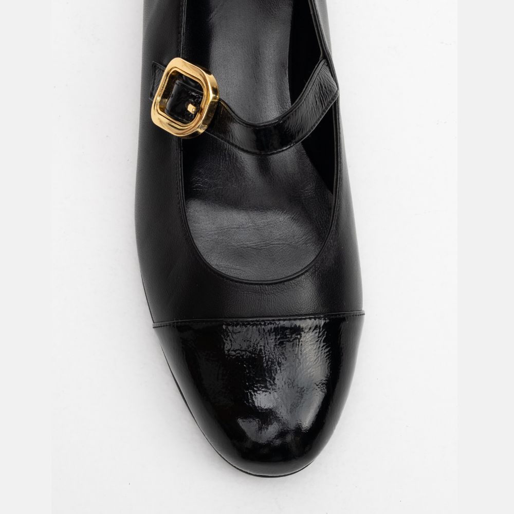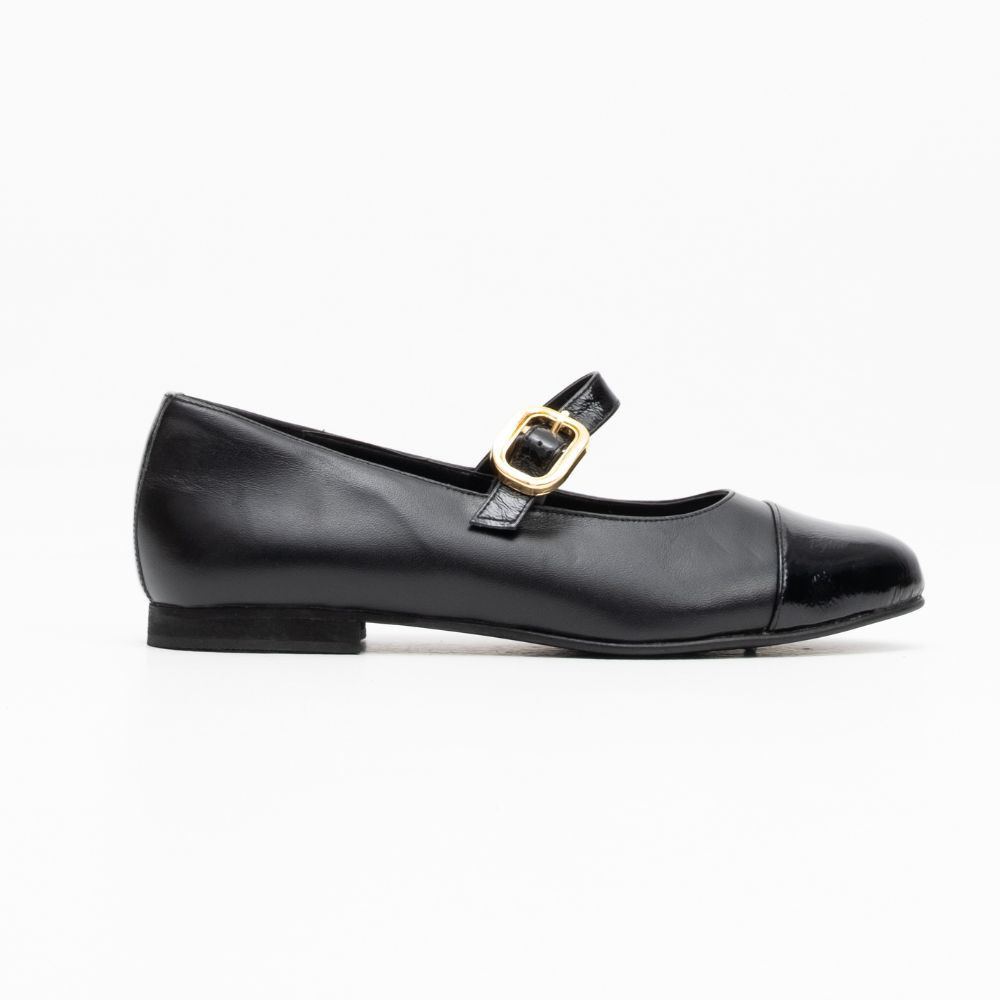 μαύρες δερμάτινες μπαλαρίνες με μπαρέτα