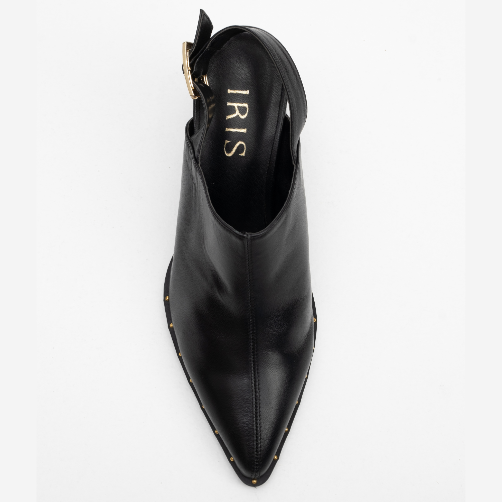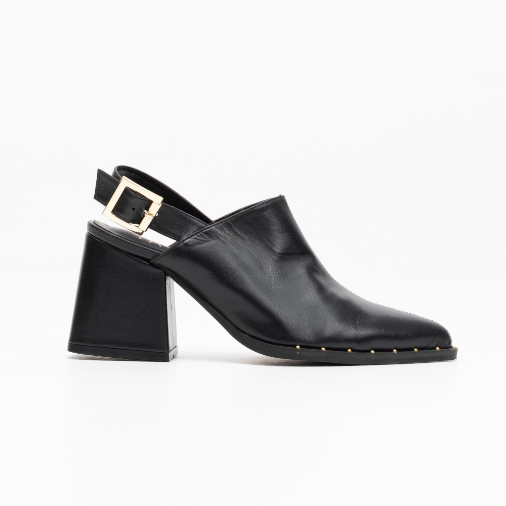 Mules δερμάτινα WESTERN style με μπαρέτα. Μαλακός πάτος, σόλα με διακοσμητικά μπουλάκια και χοντρό σταθερό τακούνι. Ένα σχέδιο για όλες τις εποχές και δυναμικές casual εμφανίσεις.