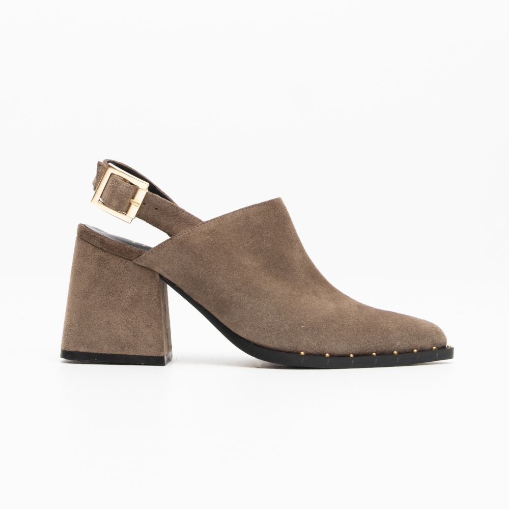 Mules δερμάτινα WESTERN style με μπαρέτα. Μαλακός πάτος, σόλα με διακοσμητικά μπουλάκια και χοντρό σταθερό τακούνι. Ένα σχέδιο για όλες τις εποχές και δυναμικές casual εμφανίσεις.