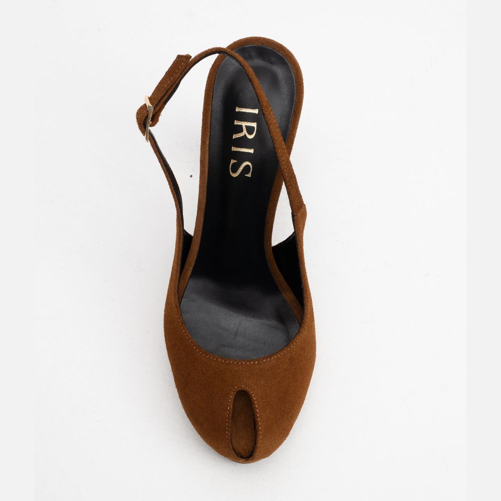 γόβες peep-toe ταμπά καστόρι slingback με φιάπα