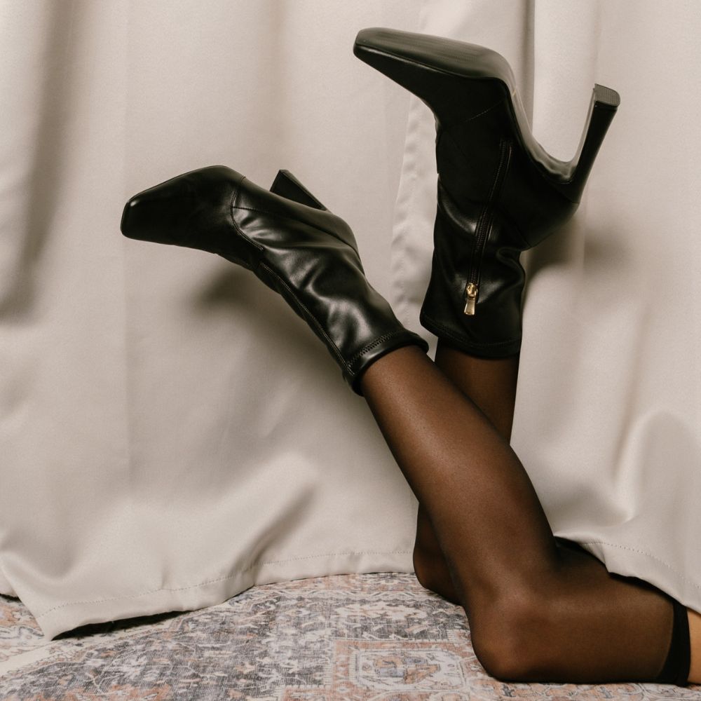 μαύρα μποτάκια ελαστικά καρέ με ψηλό τακούνι