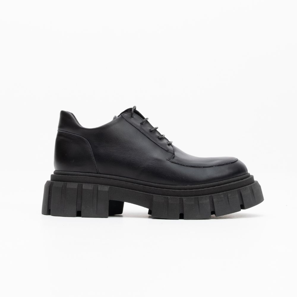 Μποτάκια σκαρπίνια δερμάτινα δετά με chunky σόλα. Άνετη στρογγυλή γραμμή κι εφαρμογή, πάτος μαλακός. Ένα σχέδιο άνετο για το γραφείο και τη βόλτα.
