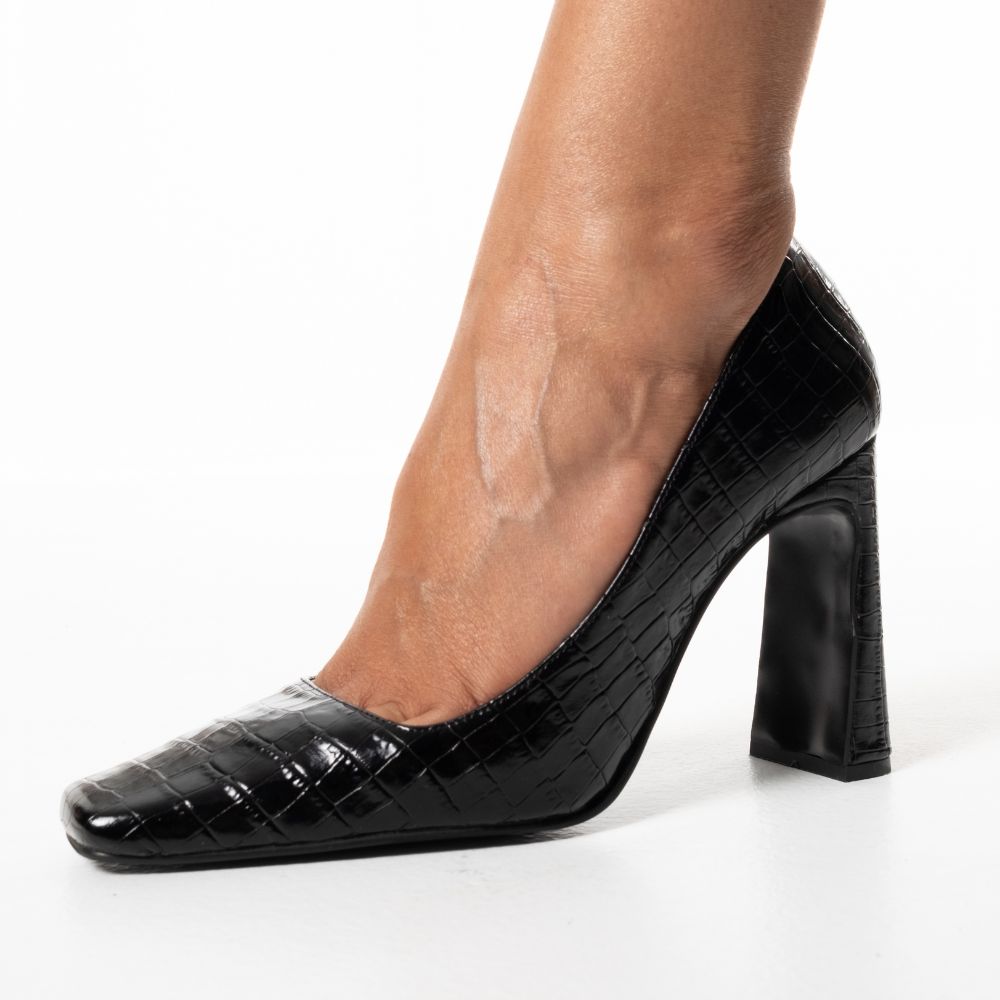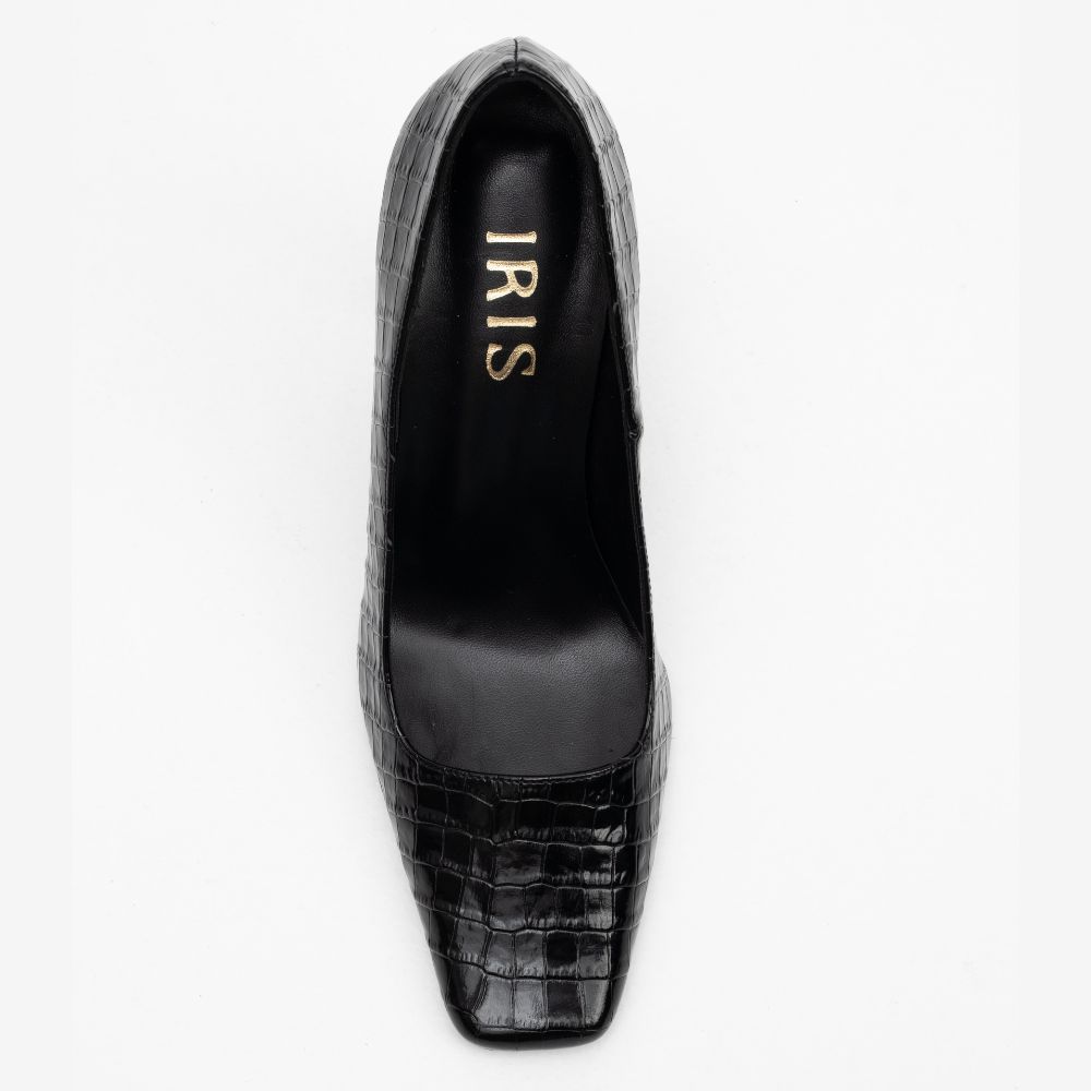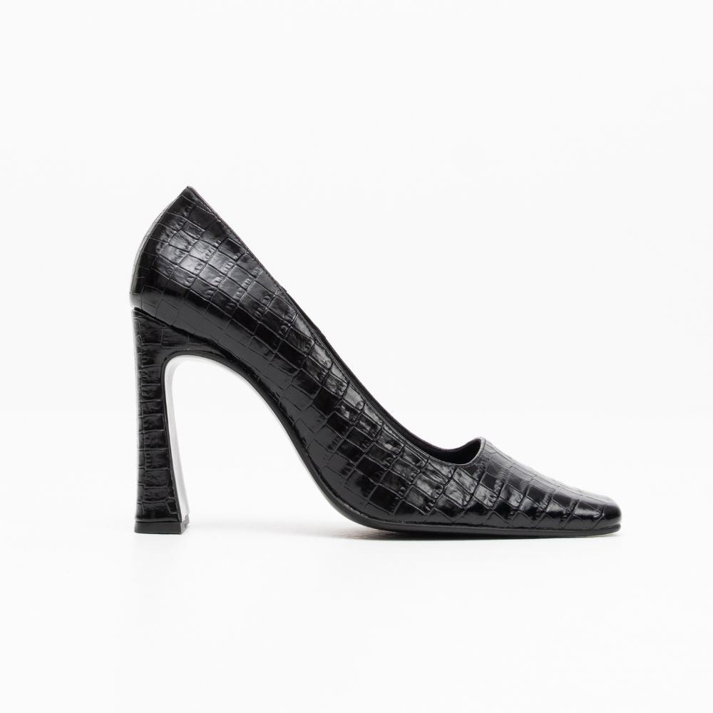γόβες μαύρο croco δέρμα με ψηλό τακούνι