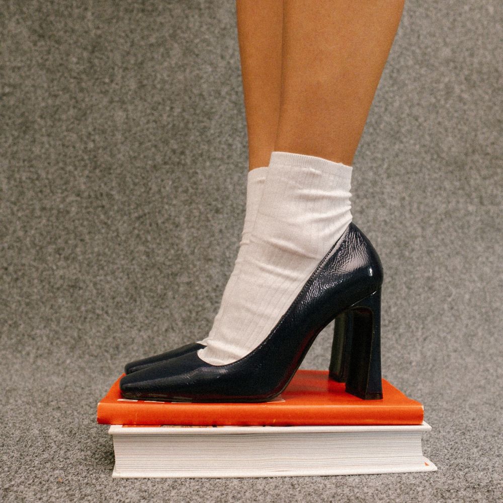 γόβες μπλε λουστρίνι με ψηλό τακούνι