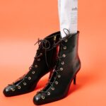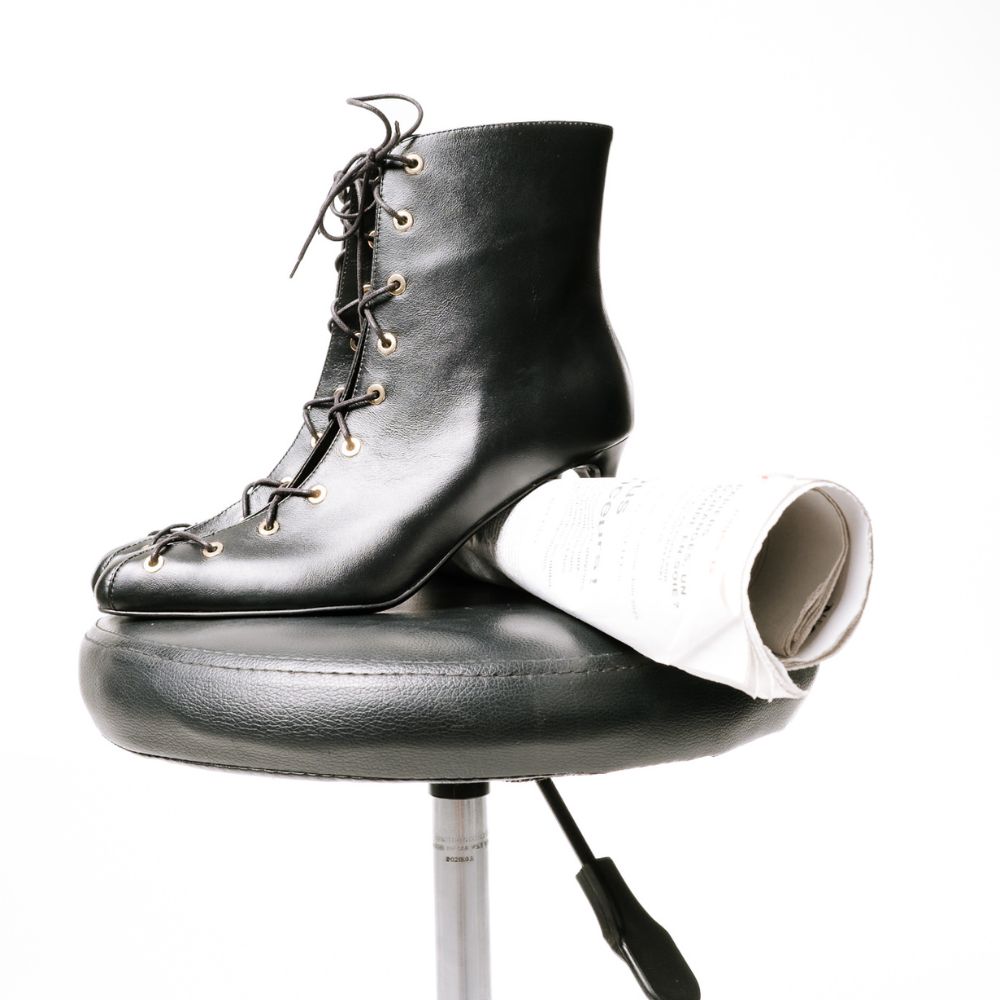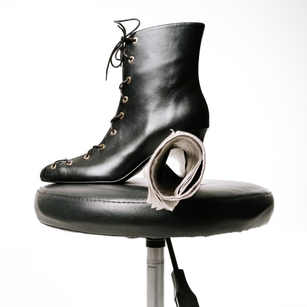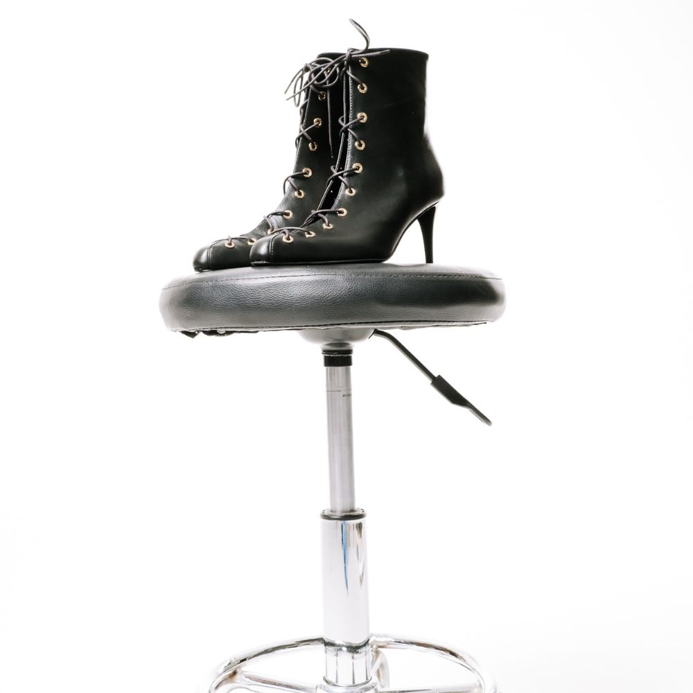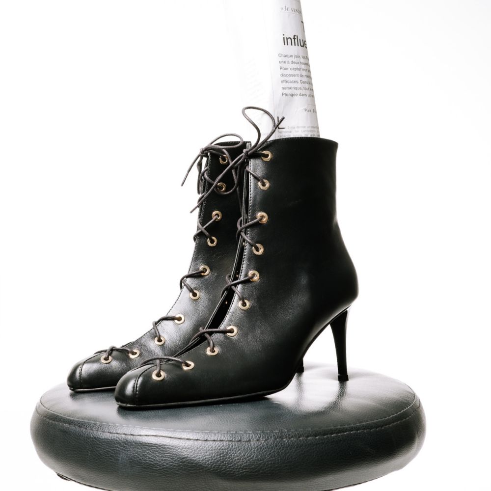 μαύρα δερμάτινα μποτάκια με δεσίματα και ψηλό ίσιο τακούνι