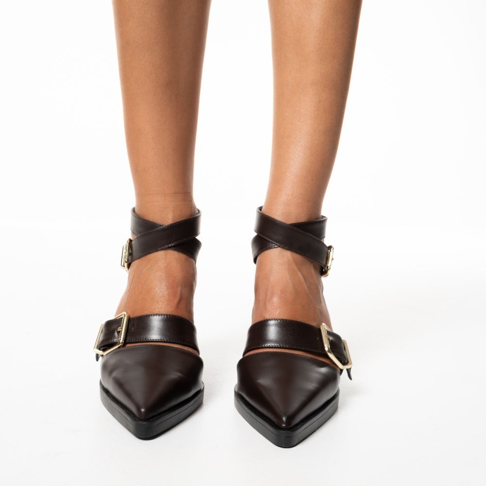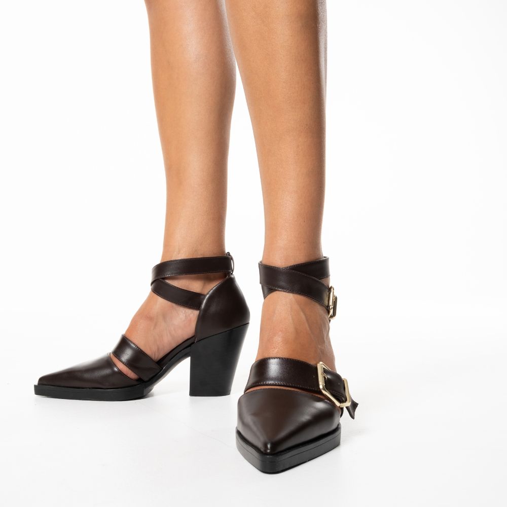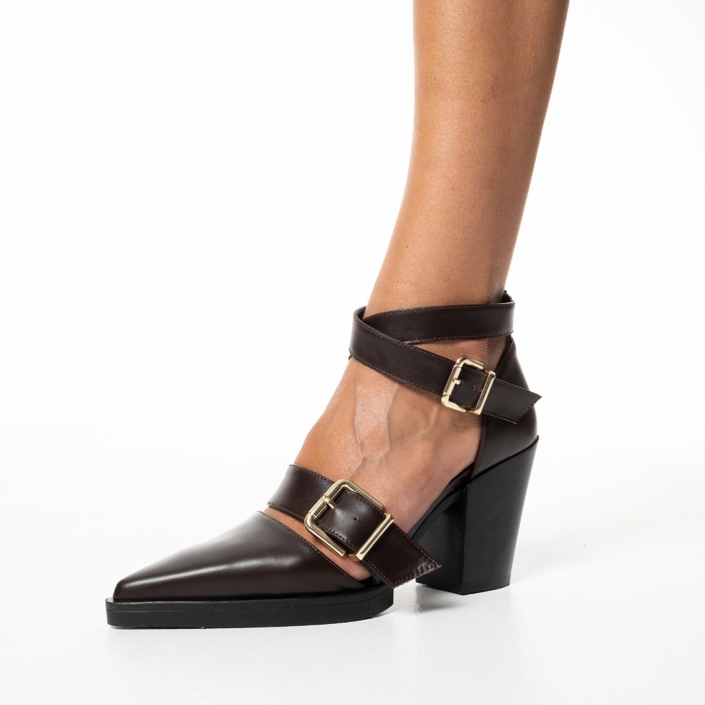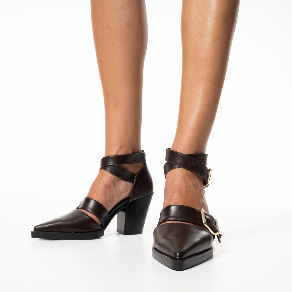 καφέ γόβες δερμάτινες western/cowboy