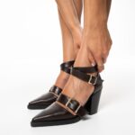 Γόβες κοφτές δερμάτινες με εντυπωσιακούς διακοσμητικούς τοκάδες. WESTERN style, με λουράκι στον αστράγαλο, μαλακό πάτο και χοντρό σταθερό τακούνι. Ένα πολύ ιδιαίτερο κι όμορφο σχέδιο για δυναμικές casual εμφανίσεις.